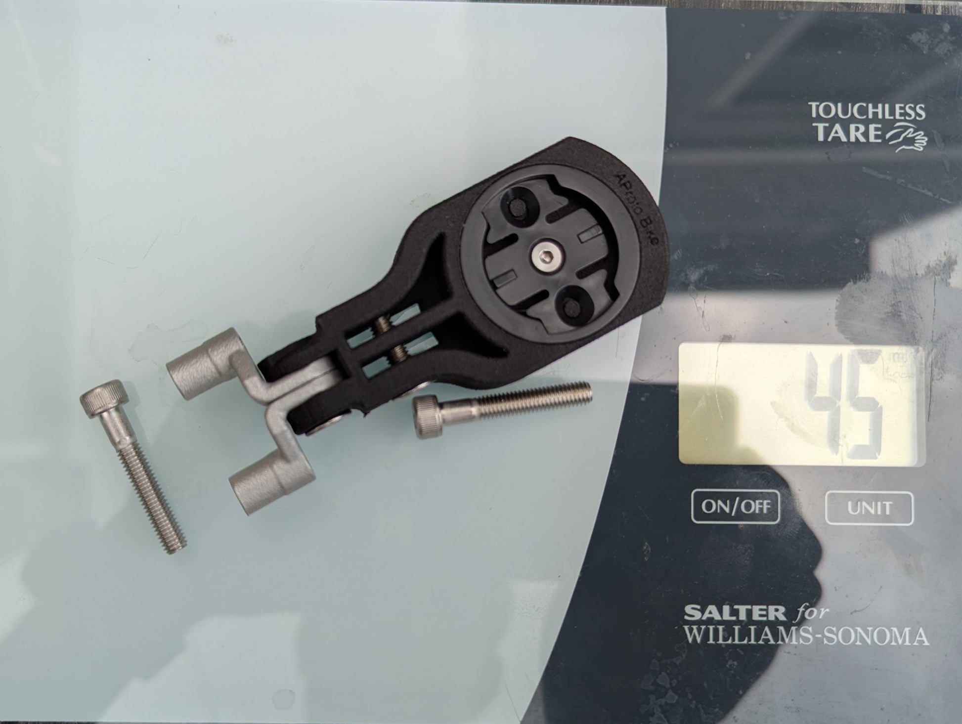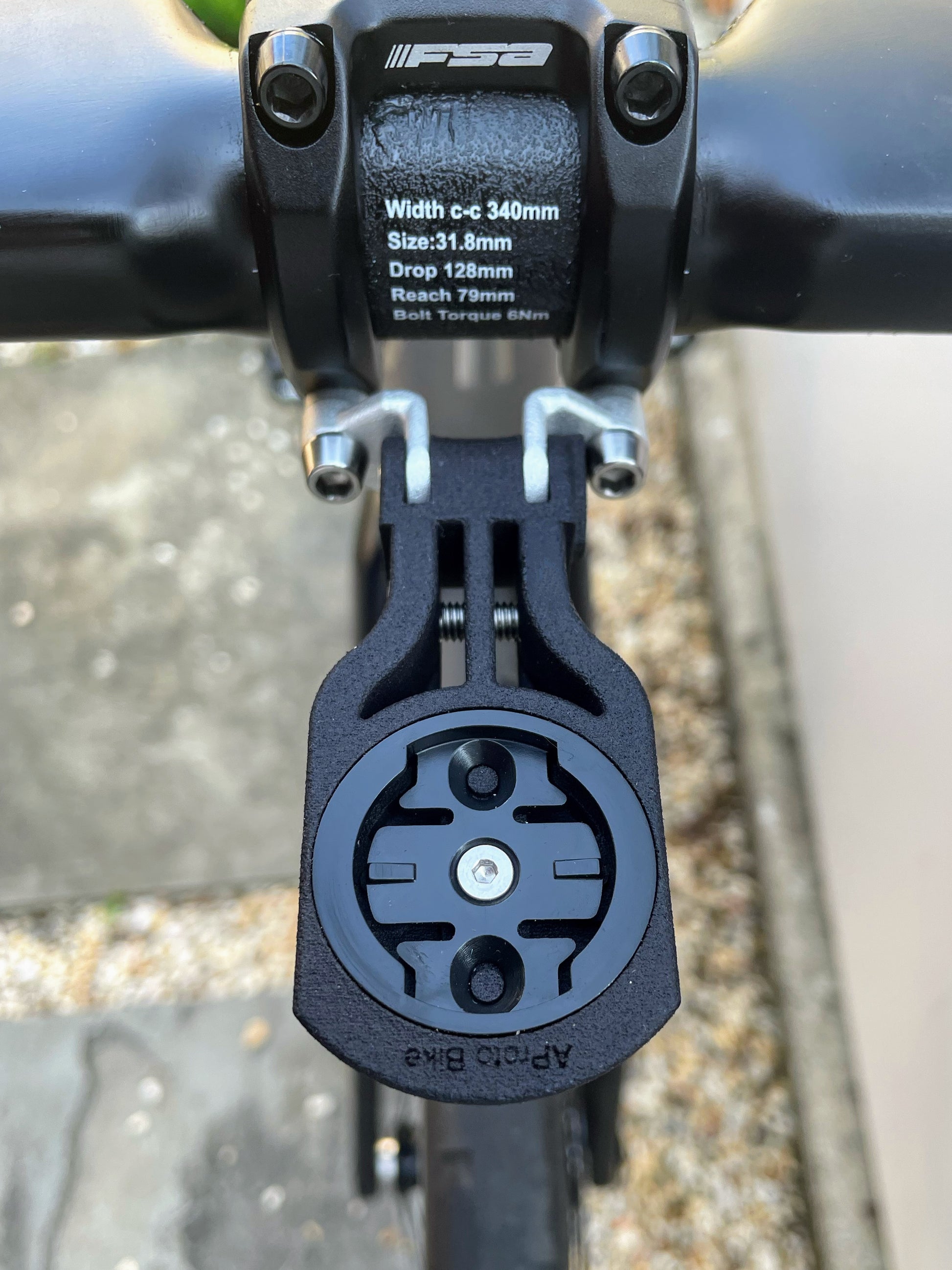 Inspired by the need for a solid yet lightweight mount to hold a Garmin 1030/1040 and an aero sensor, this mount is designed to be stiff and resistant to movement or flexing over bumps and rough terrain. An aero-section-based extension for use with that kind of sensor is also available here: https://aprotobike.com/products/gopro-style-aero-extender-50mm It is 50% off when bundled with this mount.